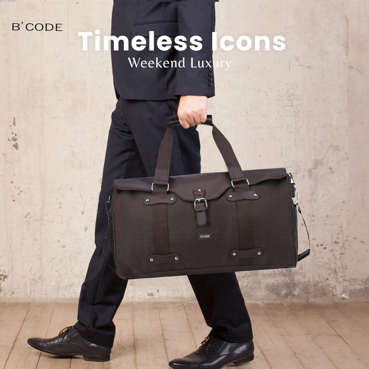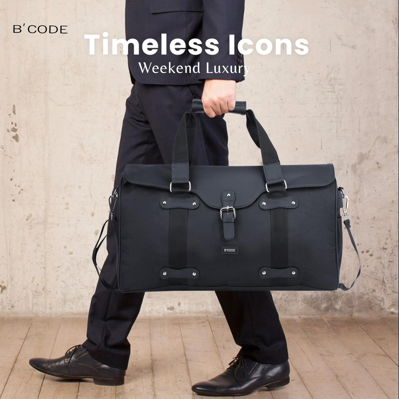 B’CODE TECHNO Travel Duffel Smart Luggage Bag IN VEGAN LEATHER – BLACK